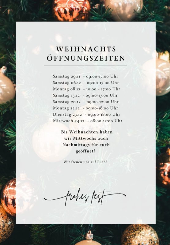 Sonntag 19.12 Dezember von10.00-17:00 durchgehend